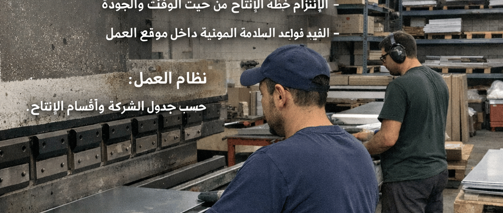 العمل في مراحل الإنتاج المختلفة مثل قص الصفائح، الثني، والحقن