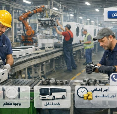طعام / خدمة نقل / أجر عمل إضافي / مكافآت.